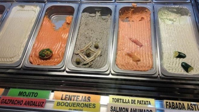 Ahora, sin poder evitarlo, la contemplo desde el mismo prisma que a otros falsos profetas del helado, como aquella ex-novia que se empeñó en hacerme probar el helado de pitufo (de tan llamativo como sospechoso e insípido color azul eléctrico) o aquel primo (literal) que en Gijón pretendió inútilmente iniciarme en los misterios del helado de fabada.